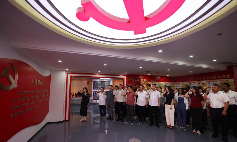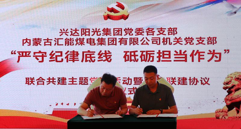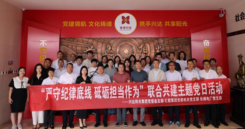 興達陽光集團董事長楊喜林,黨委書記楊寧參加了活動并陪同全體黨員參觀了興達集團黨建、企業(yè)展廳,介紹了興達集團的黨建成果和企業(yè)文化?;顒又?,全體黨員重溫了入黨誓詞,觀看了嚴守紀律主題教育片,體驗了互動式主題教育動畫。最后,匯能集團黨委與興達陽光黨委簽署了黨支部黨建聯(lián)建協(xié)議書。